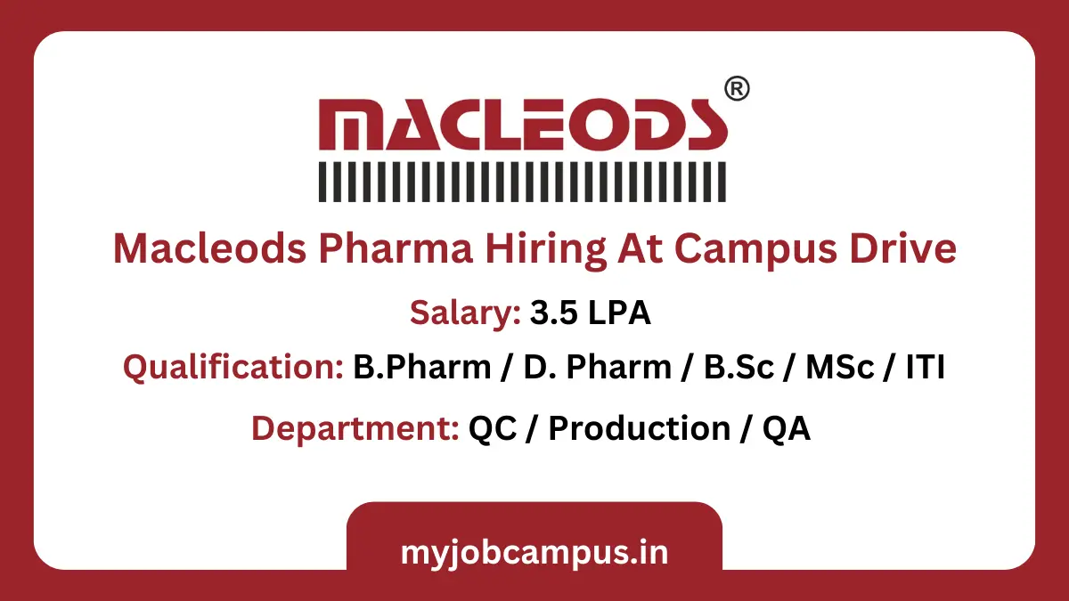 Macleods Pharma Hiring at Eminent College of Pharmaceutical Technology (ECPT) Pool Campus Recruitment Drive