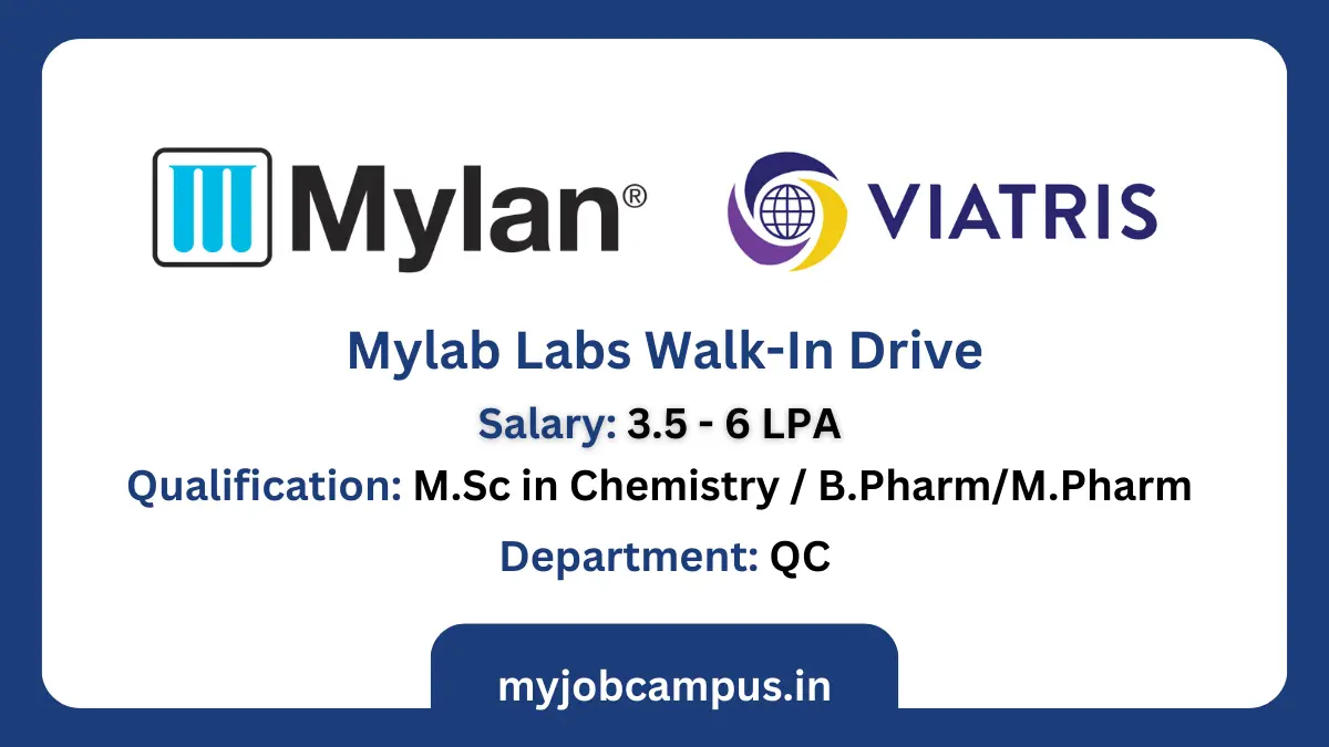 Mylan Laboratories Limited (now part of Viatris) is conducting a Recruitment Drive for QC Department positions at their OSD Manufacturing Facilities in Nashik & Aurangabad (Chh. Sambhajinagar).